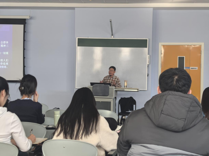 讲座伊始,吴民祥教授从文化与文化冲突理论切入,清晰界定了广义文化与狭义文化的内涵——广义文化涵盖物质、制度、精神三个层面,狭义文化则聚焦社会群体共有的观念与行为,而价值观念正是文化的核心。他特别辨析了“文化”与“文明”的差异:文化是民族差异性的体现,无高低之分,靠耳濡目染习得;文明则趋向人类普遍性,需主动学习获取,常与“有教养”“有规则”相伴。这一辨析为后续探讨文化冲突埋下伏笔,也让同学们对全球化背景下的文化发展有了更理性的认知。