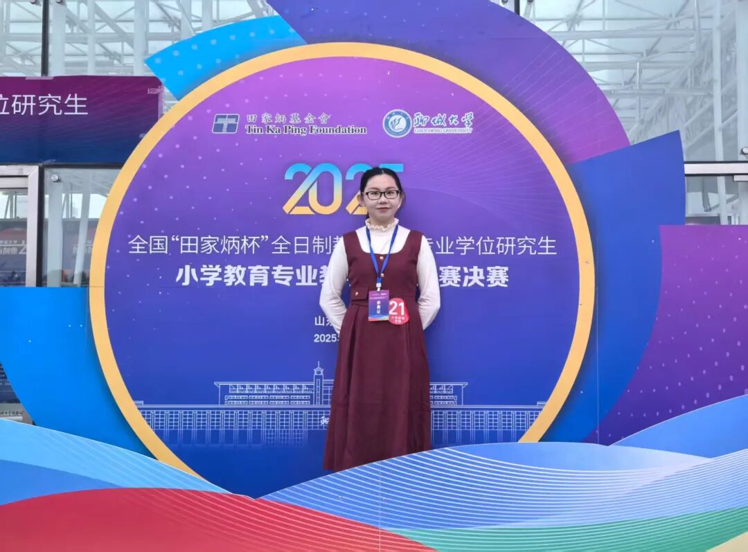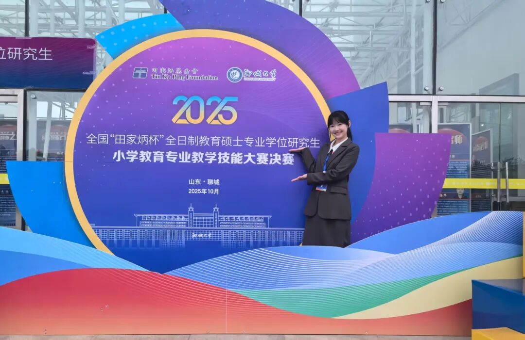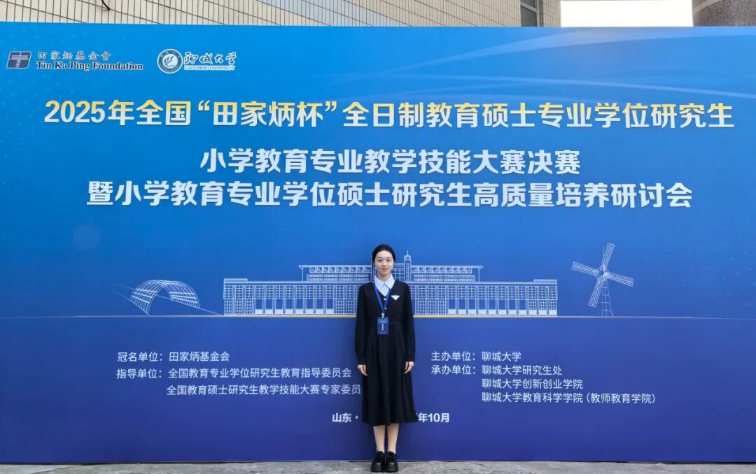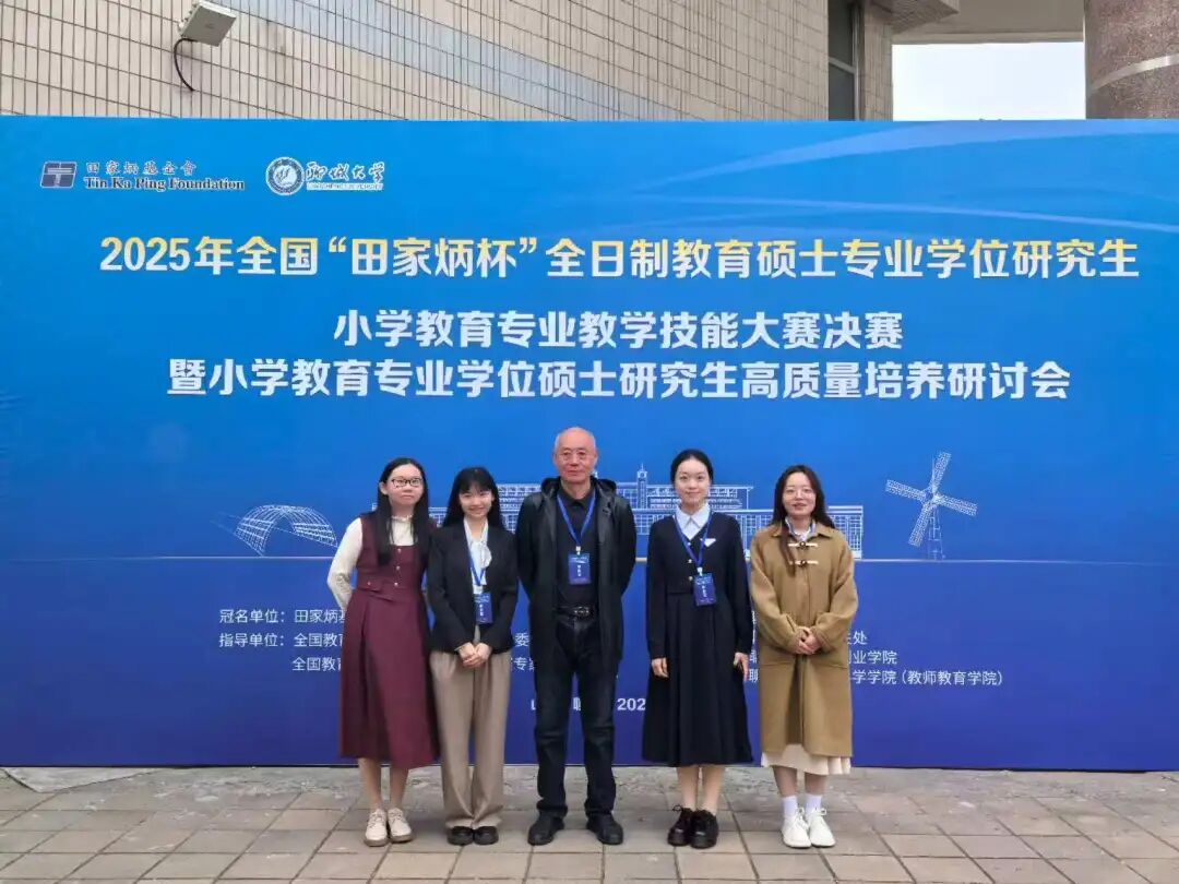 2025年全国“田家炳杯”全日制教育硕士专业学位研究生小学教育专业教学技能大赛决赛于10月25日-26日在聊城大学圆满举办。我院小学教育专业4名研究生在赛事中表现亮眼,预赛入围人数在吉林省位列第二、省属学校第一,决赛中李冰冰、曾淳斩获小学语文三等奖,黎海雯荣获小学英语三等奖,牛晨阳荣获小学英语优秀教学设计奖,创下小学教育专业在国家级赛事中获奖最多的纪录,尽显我院学子的教学实力与专业风采!