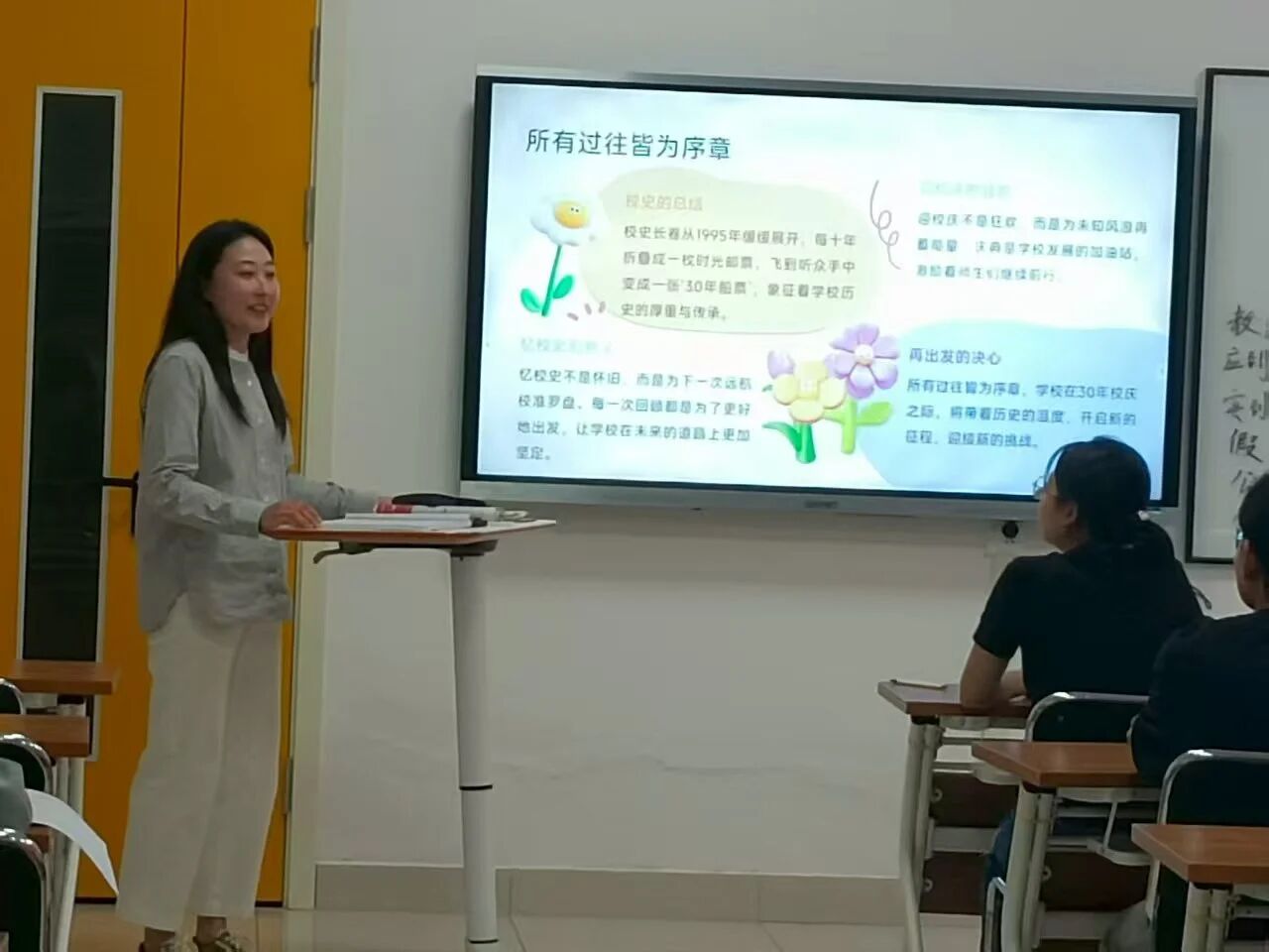 2025年9月14日晚,教育学院组织开展了“忆校史不忘初心,迎校庆砥砺前行”主题班会。本次班会由学工办主任张瑶老师及辅导员王皓老师、李卓老师、张成叶老师、孙寒雪老师、李芊老师共同主持,旨在通过回顾校史凝聚师生力量,引导大家以积极姿态迎接学校三十周年校庆。