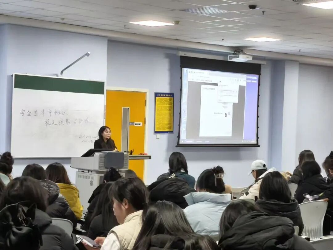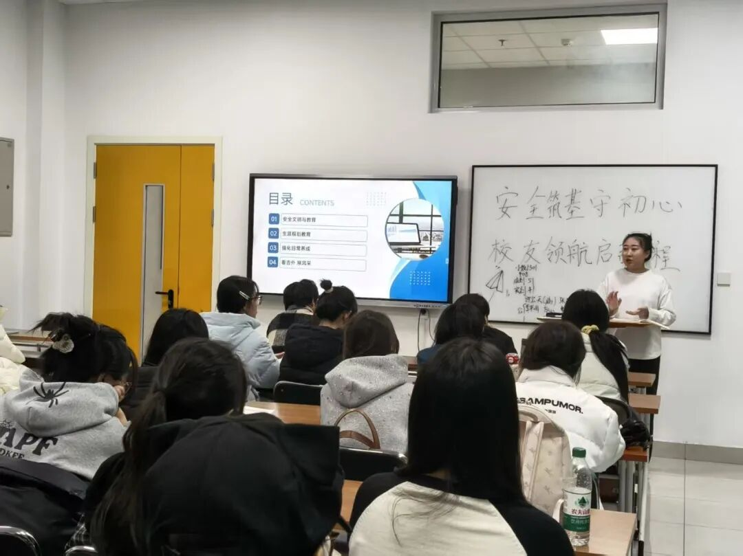 老师讲解火灾逃生“三要素”:低姿弯腰、湿毛巾捂口鼻、沿安全出口逃生,介绍常见消防设施适用场景,提升学生火场逃生和初期火灾扑灭能力。接着,辅导员依托校友成长经历,引导学生适应大学生活,了解专业特点与发展前景,初步建立职业生涯概念,感知时代使命与社会需求,激发成长内驱力,掌握短期学业目标制定方法,为未来生涯发展奠定基础。