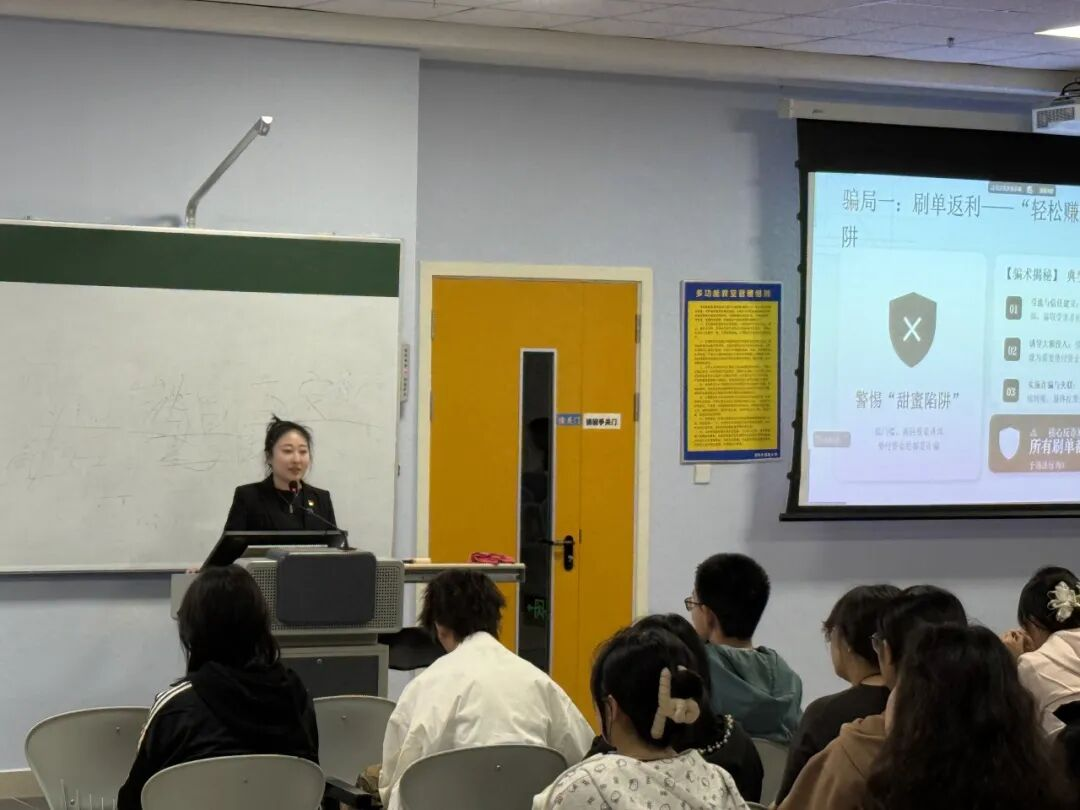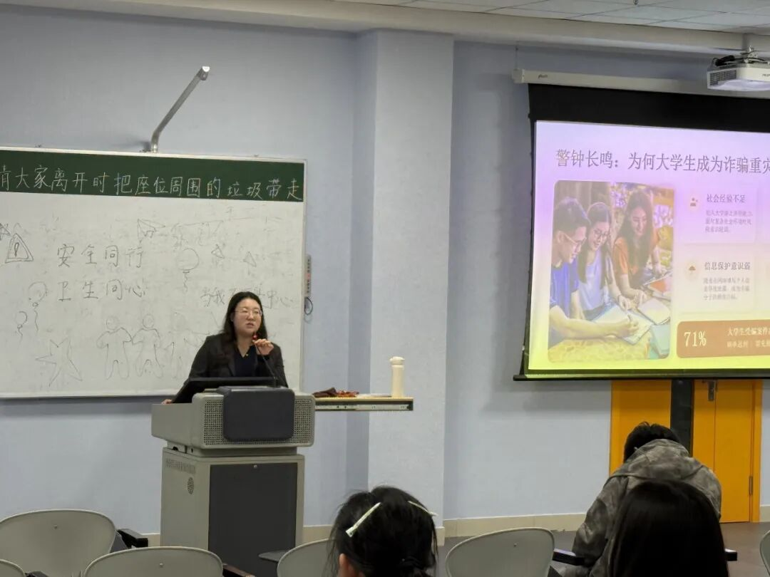 辅导员老师开展“筑牢防诈‘心墙’ 守护青春安全”主题班会,结合大学生受骗特点,深入讲解刷单返利、虚假兼职、游戏交易、冒充客服、校园贷等高发诈骗手段,普及反诈“六不原则”,引导大家提高防范意识、远离诈骗陷阱。同时围绕春季诺如病毒防控,详细介绍病毒特征、传播途径及个人防护“六要六不要”要求,倡导“垃圾出楼”,做好宿舍卫生与环境消杀,全面提升同学们的安全防范与健康防护能力。