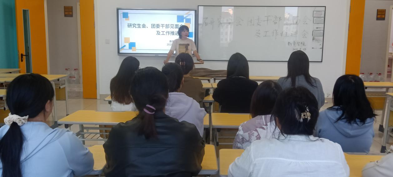 为明确研究生会各部门工作方向,统筹推进运动会组织、学风建设、寝室管理等重点任务,并衔接国奖评选、党团培训等后续工作,教育学院于9月26日16:00在新地球村417教室召开2025年研究生会、团委工作推进会。会议由学工办主任张瑶老师主持,辅导员李卓老师及第六届研究生会成员共同参加,围绕“强化责任意识、优化工作协同、提升服务效能”的核心目标,对当前工作痛点、部门职责及未来规划展开部署,为研究生会高效运转与校园服务质量提升奠定了基础。