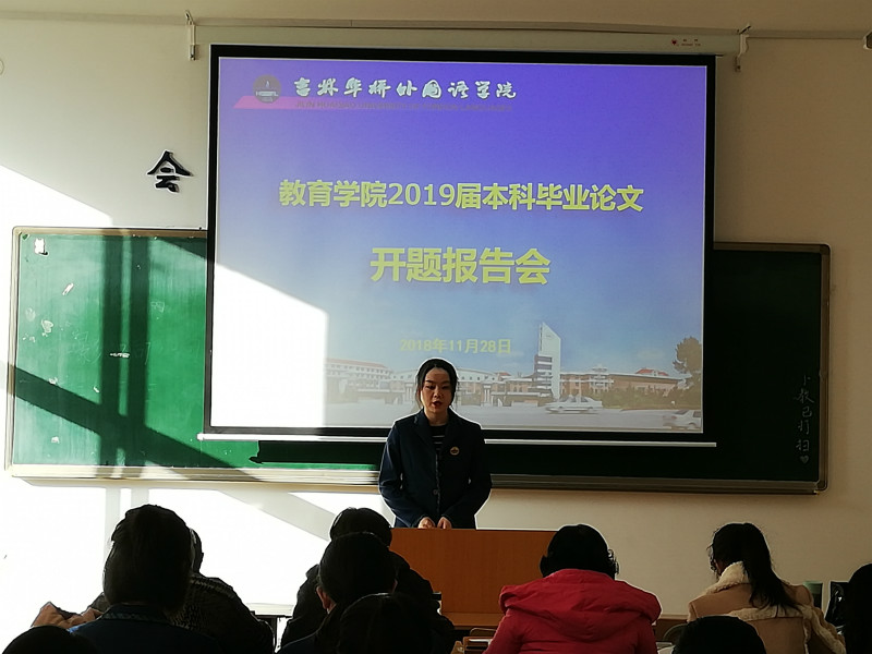 为了对学生的知识能力进行一次全面的考核,检查学生科学研究基本功的训练成果,培养学生综合运用所学知识独立地分析问题和解决问题的能力,同时审核、并确定2019届本科毕业论文选题及内容,监督和保证研究生毕业论文的质量。2018年11月28日13时10分,教育学院组织2019届毕业生于电教楼203、205、206教室开展“2019届本科毕业论文开题报告会”。莅临本次会议的导师有教育学院院长林永柏教授、教育学院副院长卫沈丽老师、院长助理李岩老师、赵欣欣老师、教育学院王景英教授、陈学峰教授、艺术教育教研室主任李倩老师、教研室平倩老师、张茜萌老师、巩玥老师、秦涵老师、可沛玉老师以及于洋老师。