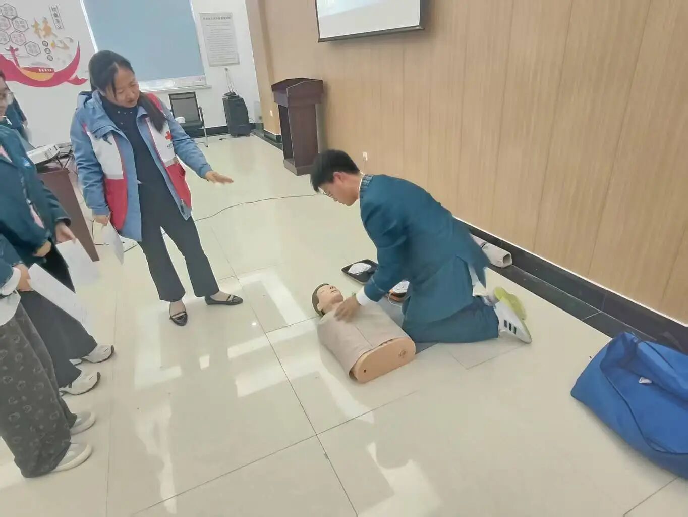 培训核心围绕心肺复苏中的人工呼吸与AED(自动体外除颤器)使用两大关键技能展开。医生详细讲解了胸外按压的标准深度、频率,人工呼吸的规范流程,以及AED“开机—贴电极片—听从语音指令”的操作步骤,并补充了诸多日常易忽视的急救注意事项 。